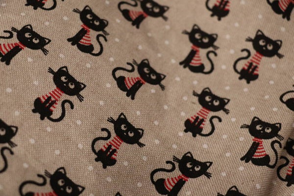 Magnifique sac cabas impression chats noirs en marinière doublé d'un coton uni rouge avec une poche intérieure pour y glisser vos clefs par exemple. Anses coulissantes rouges.