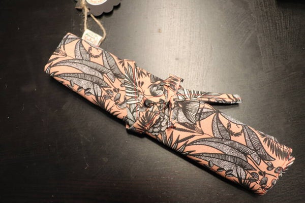 Etui à couverts nomade feuilles grises