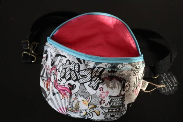 Magnifique sac Banane réalisé dans un tissu Jacquard blanc à l'imprimé Manga.
