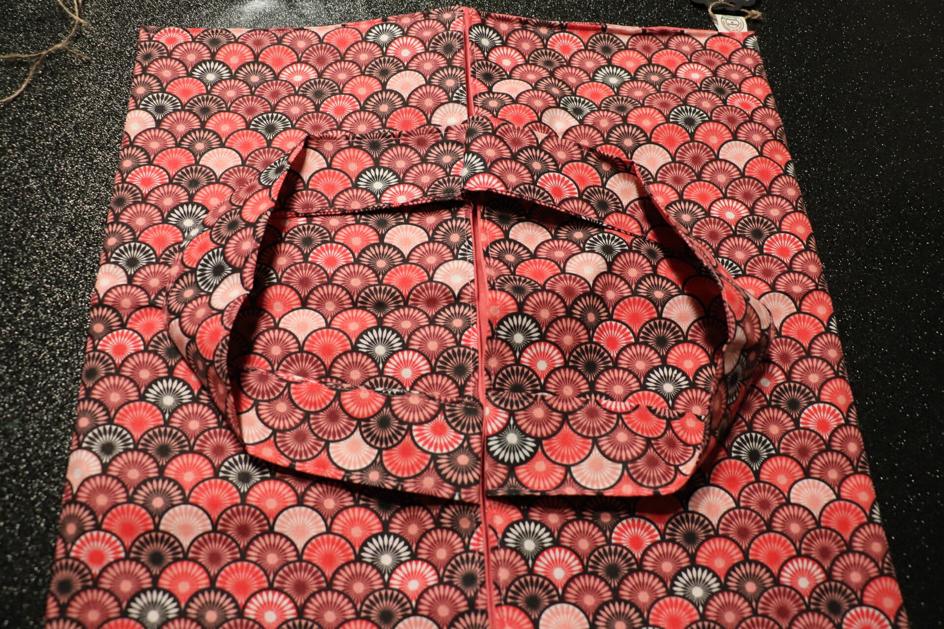 Joli sac à tarte en tissu imprimé japonais, il est doublé avec un coton rose fushia.