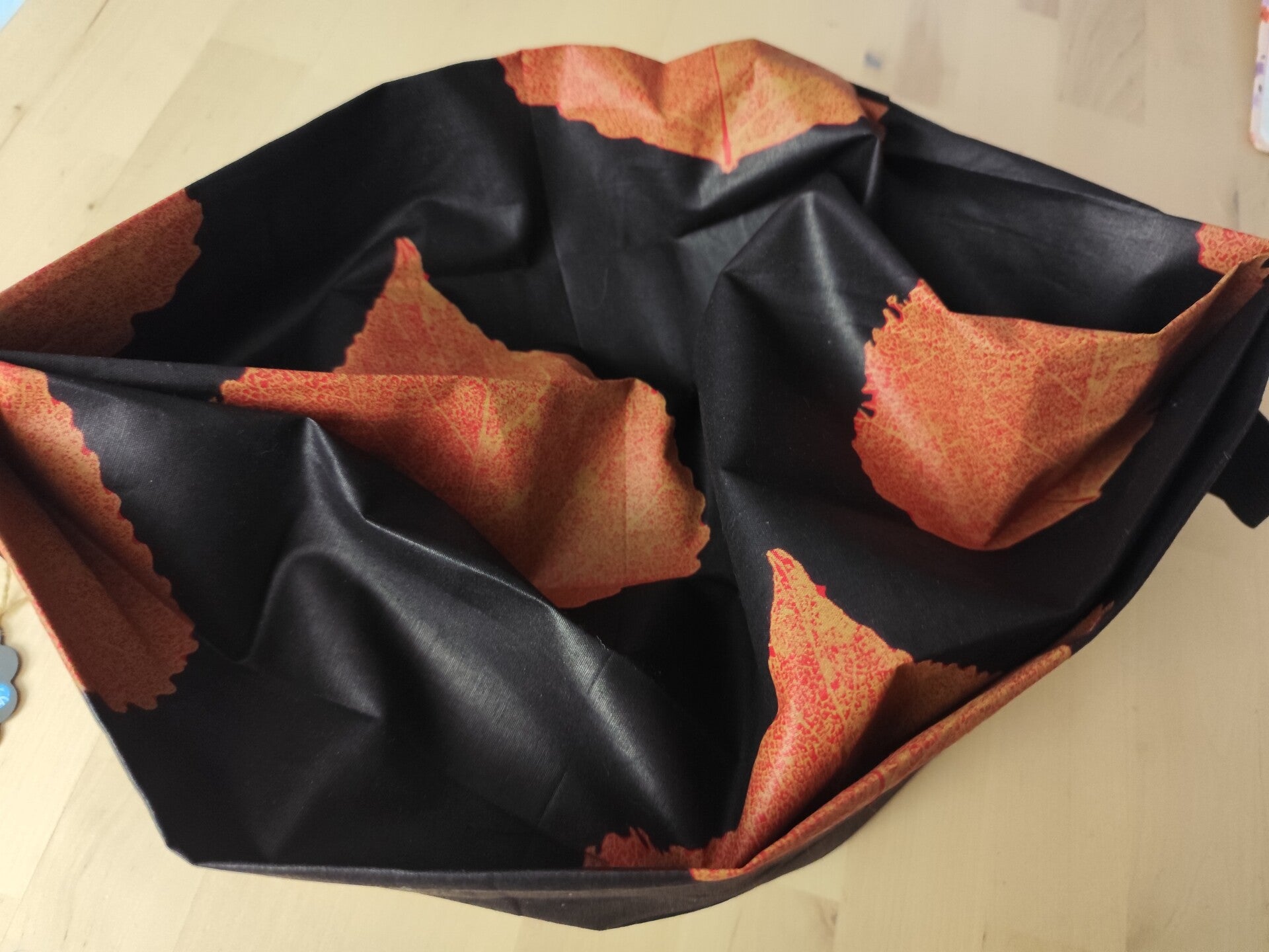 Composition : Coton africain Wax, sangle en polyester pour les anses, un bouton pression et un élastique.