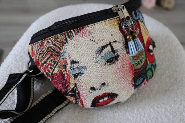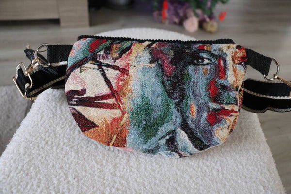 Magnifique sac Banane réalisé dans un tissu Jacquard français aux couleurs des stars et un velours côtelé noir pour le dessus.