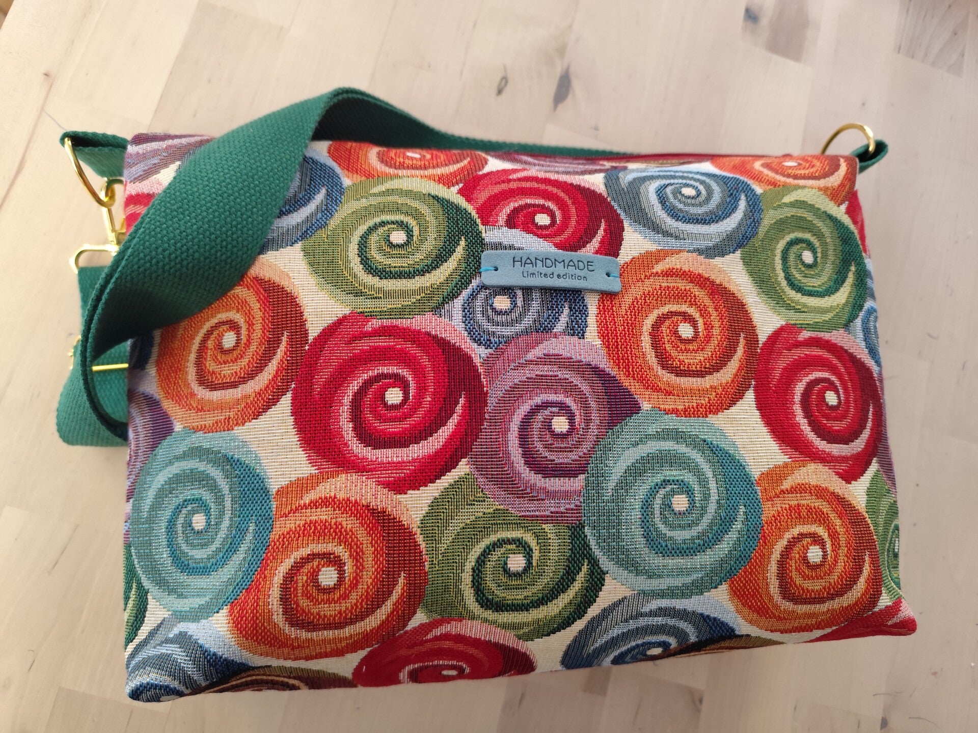 Très joli sac Toumou réalisé dans un tissu Jacquard Français aux motifs tourbillons multicolores...