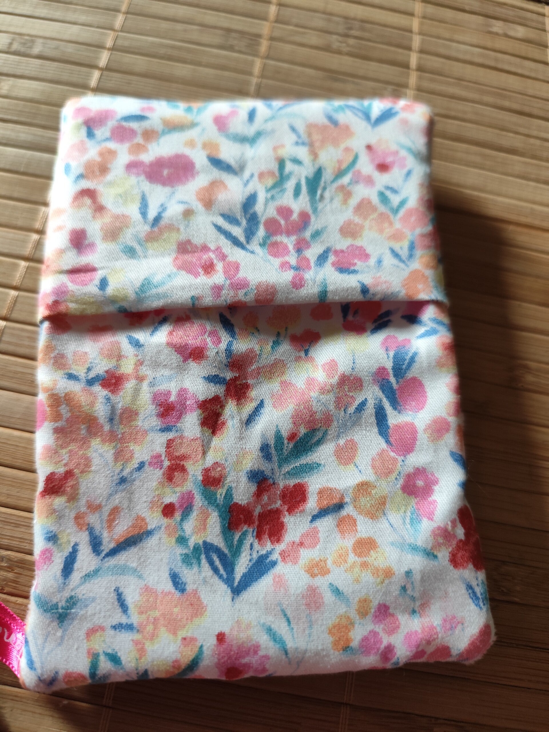 Gant magique fluffy réalisé dans un minky rose et un joli tissu fleuri.