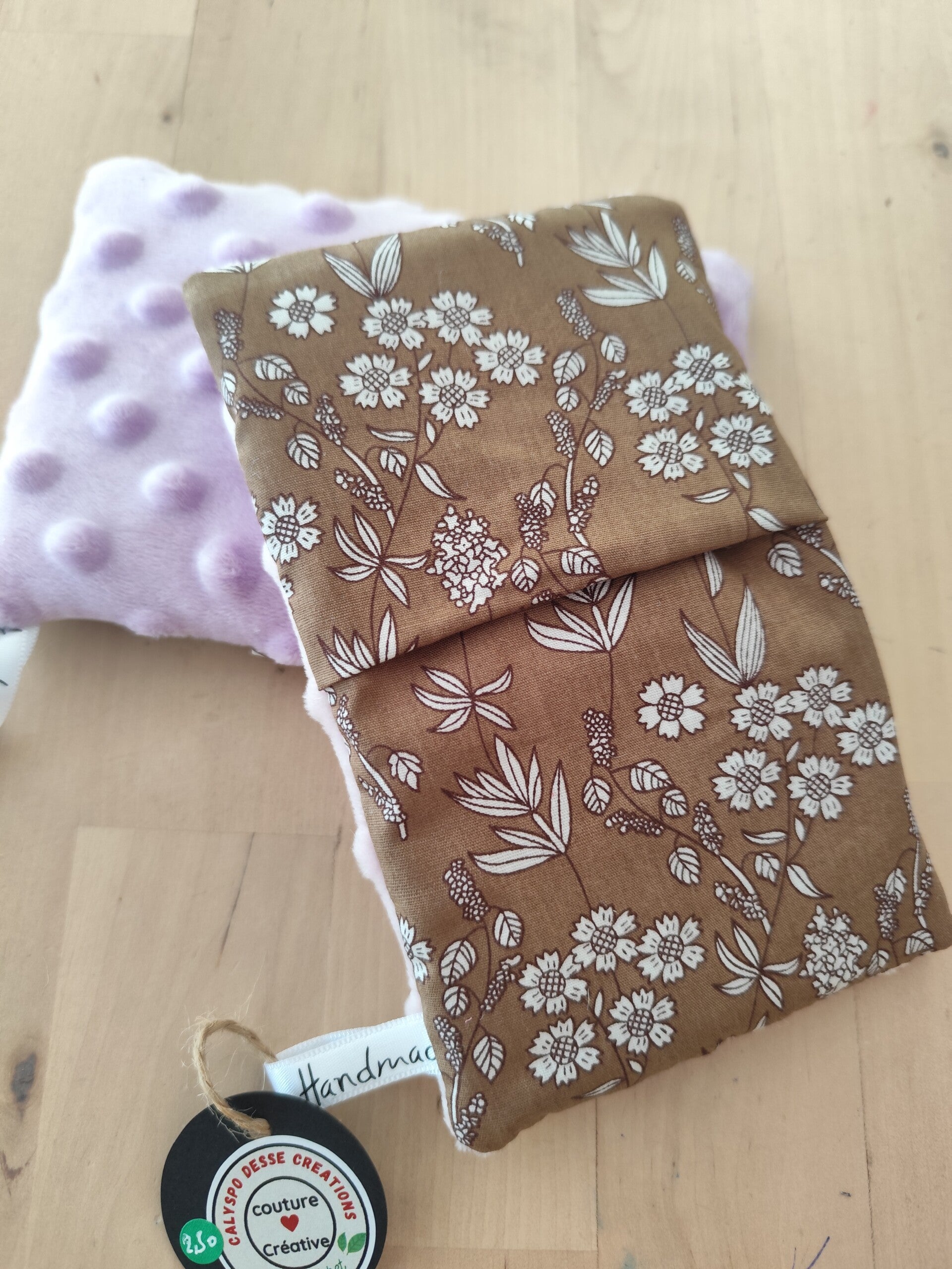 Gant magique fluffy réalisé dans un minky mauve et un joli tissu imprimé .
