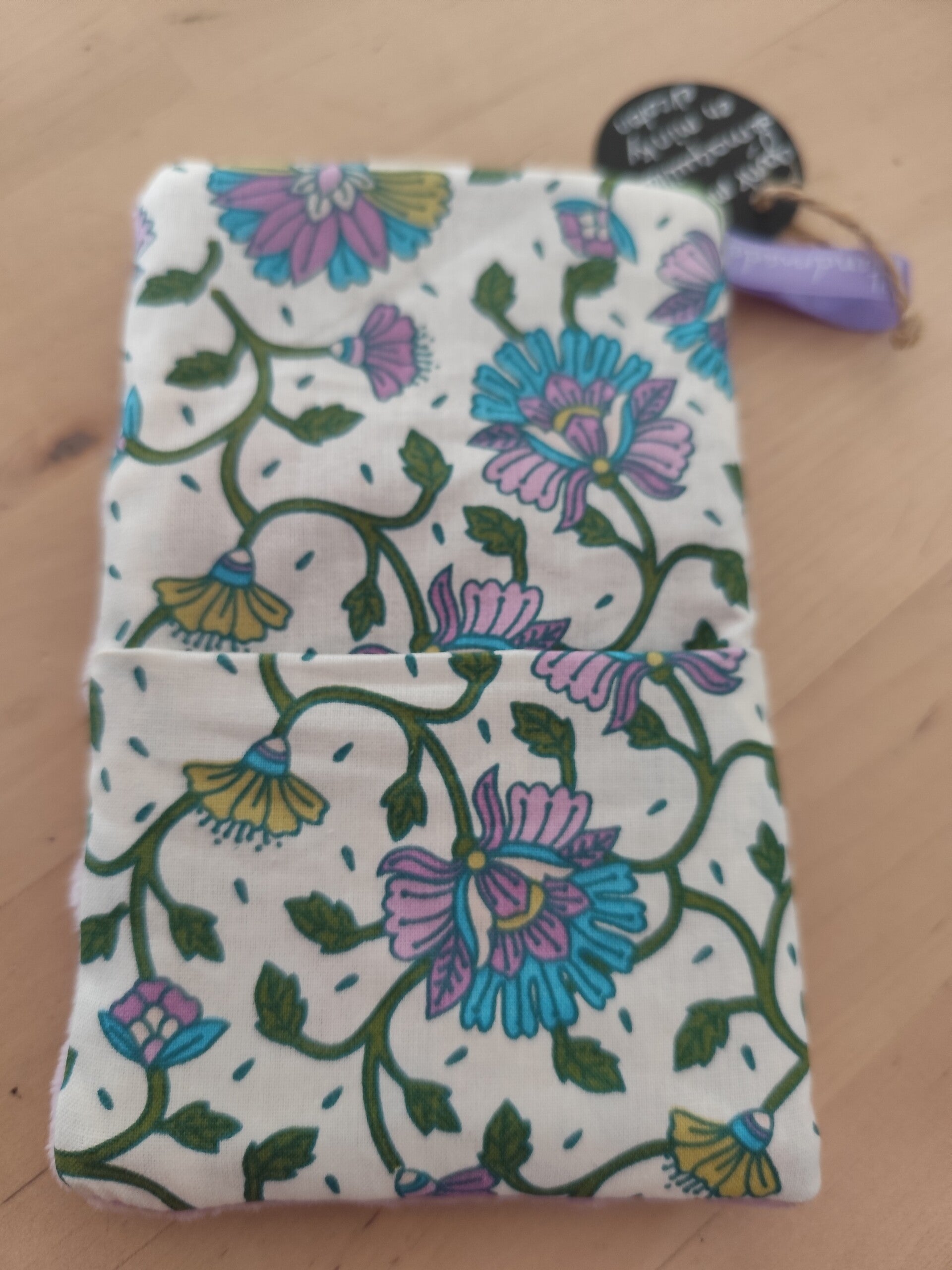 Gant magique fluffy réalisé dans un minky bmmauve et un joli tissu imprimé .