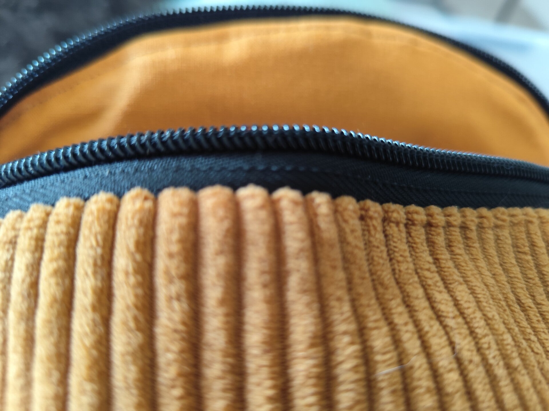 Jolie banane réalisée dans un Jacquard Français et du velours côtelé . Il est doublé dans un coton uni.