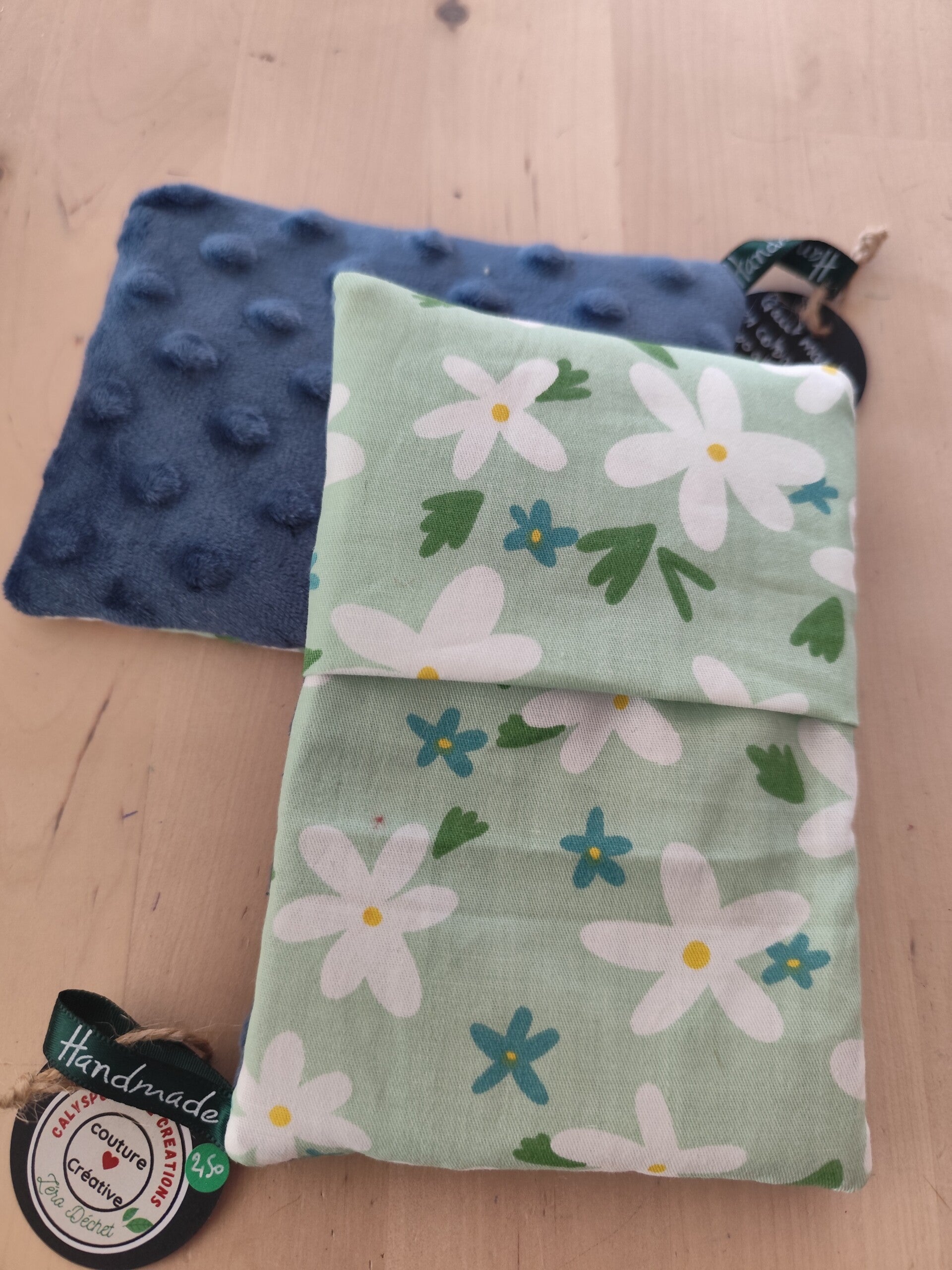 Gant magique fluffy réalisé dans un minky bleu et un joli tissu imprimé.