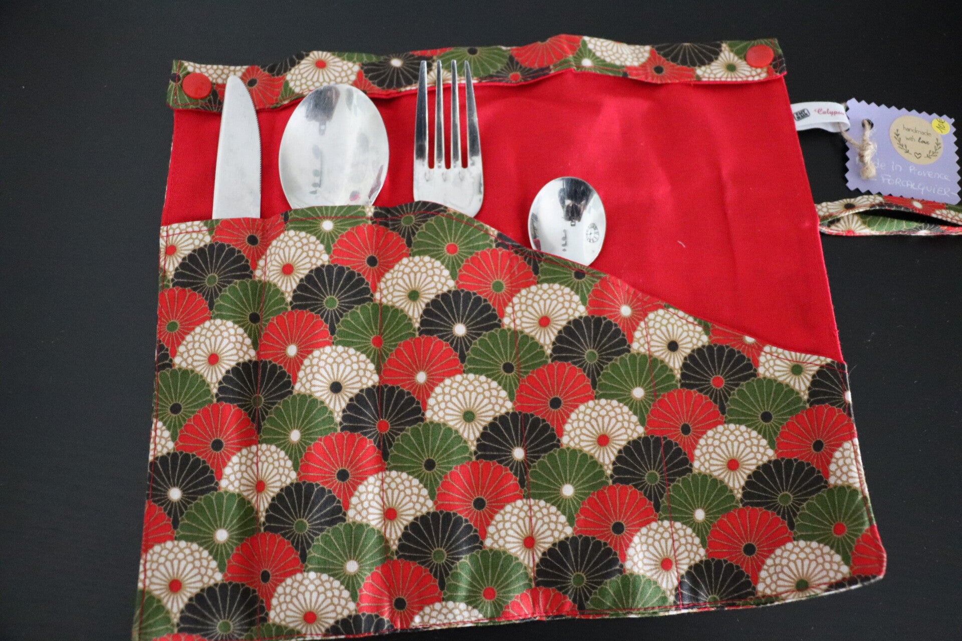 Trés joli tissu japonais en coton Oeko-tex motif chrysanthèmes, doublé d'un coton uni rouge