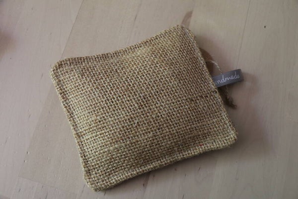 Composition : tissu coton imprimé, toile de jute et fibre de polyester.