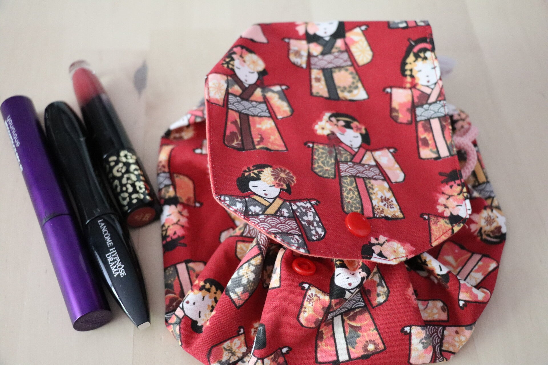 Composition : Tissus en coton Oeko-tex, cordon en polyester et bouton pression.