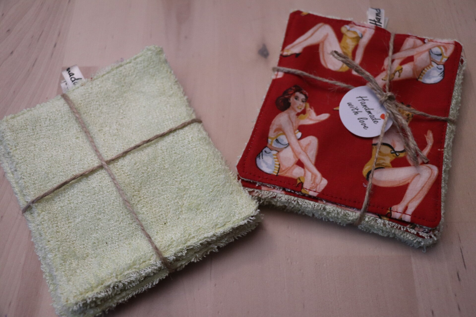 Composition : une face en coton imprimé et une autre face en éponge de bambou bio.