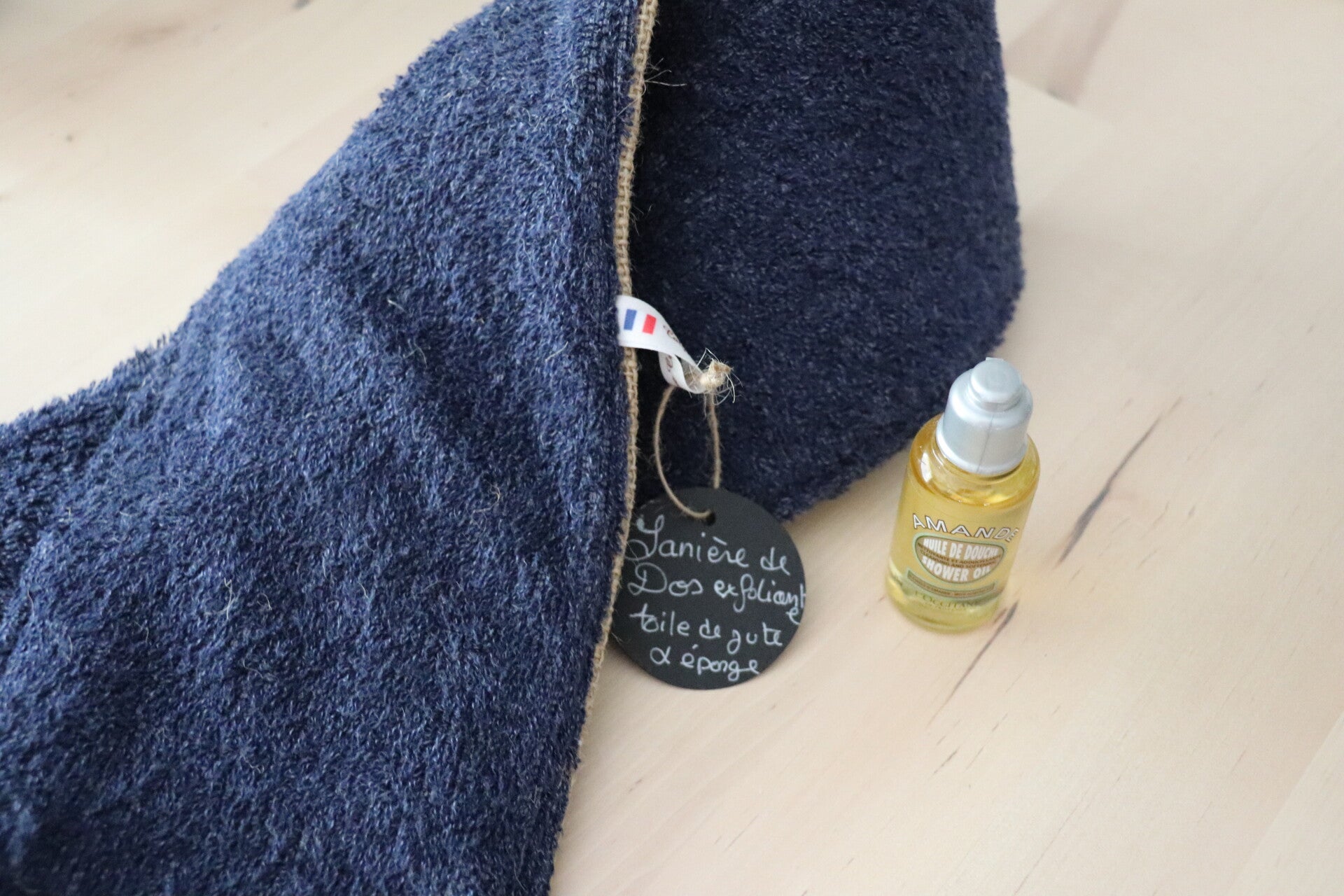 Trés pratique pour se laver le dos, un coté exfoliant et un coté tout doux en éponge de coton !
