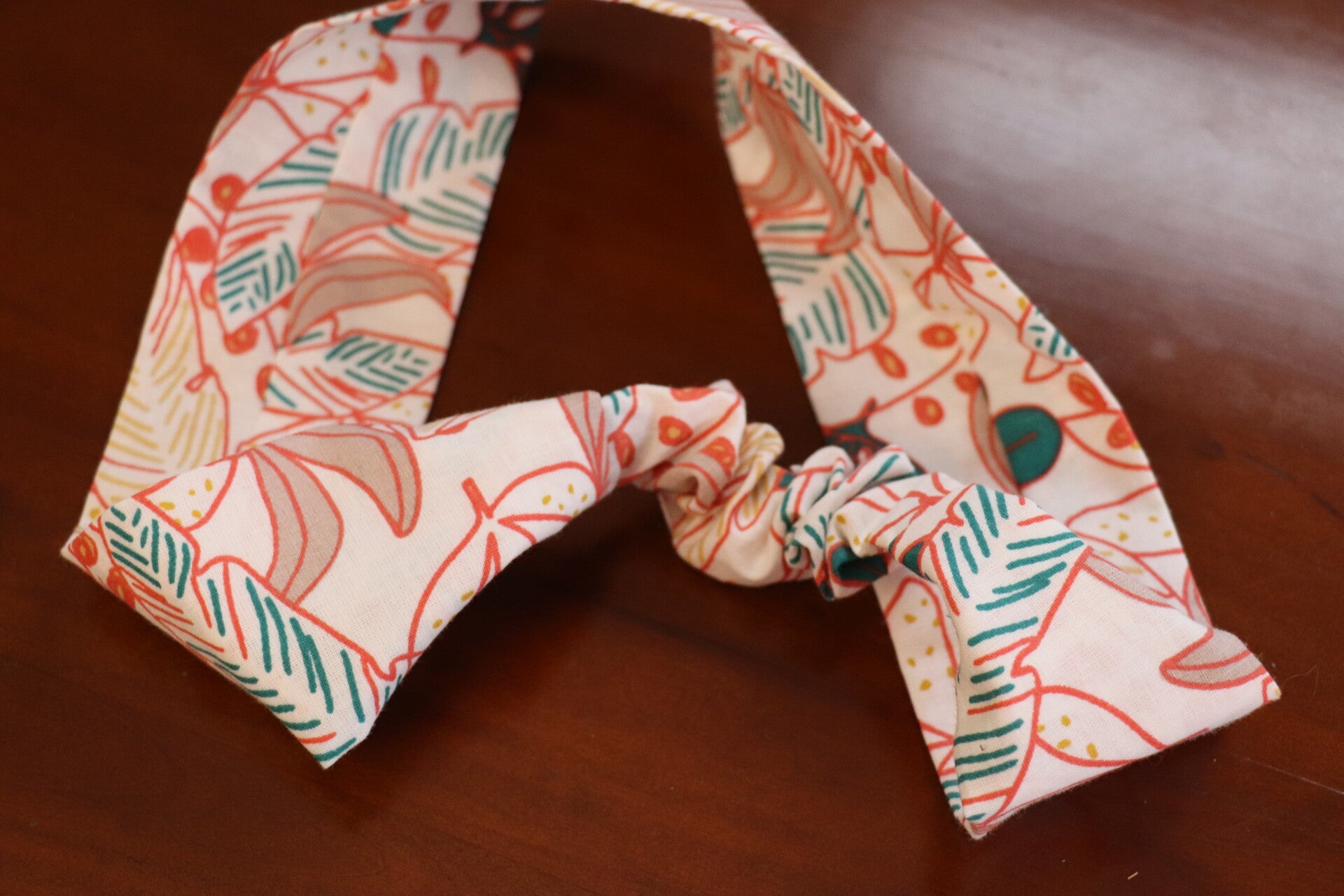 Joli bandeau  en coton Oeko-tex,  Largeur 5 cm et taille environ 58 cm avec un élastique à la nuque qui permet le maintien.