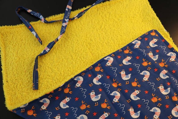 Joli tissu de coton imprimé doublé d'une serviette éponge en coton.